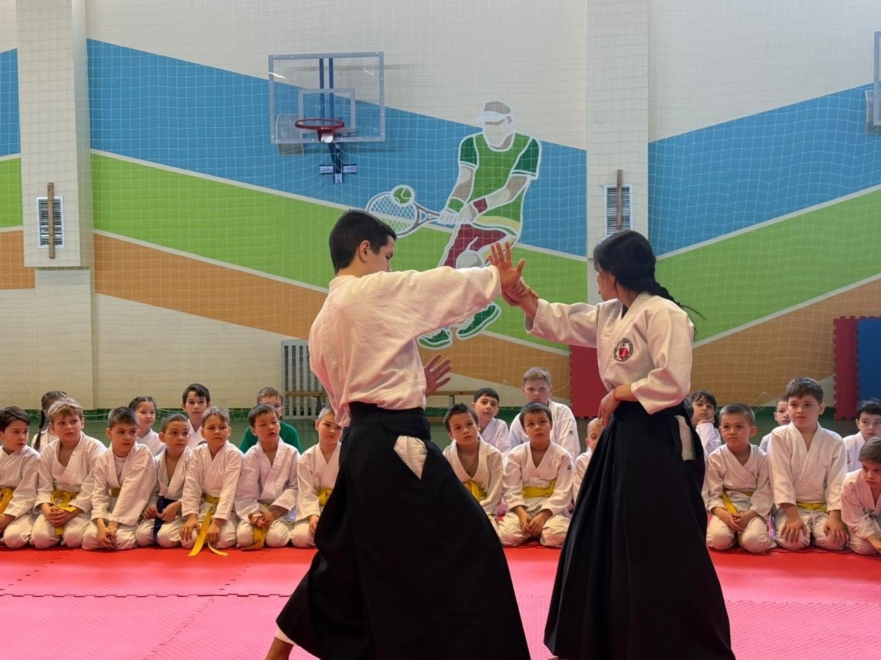 Привычные приёмы айкидо были рассмотрены с новой, необычной стороны. Все с интересом приняли участие в этих тренировках.